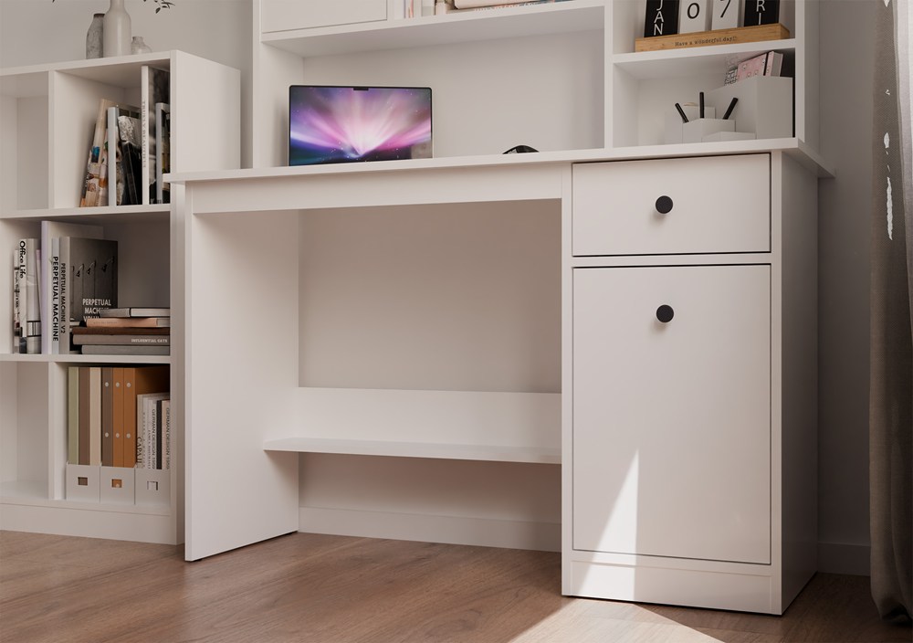 Powierzchnię biurka można łatwo utrzymać w czystości, wystarczy miękka szmatka. Unikaj silnych środków chemicznych, aby zachować nienaganny wygląd mebla na lata.