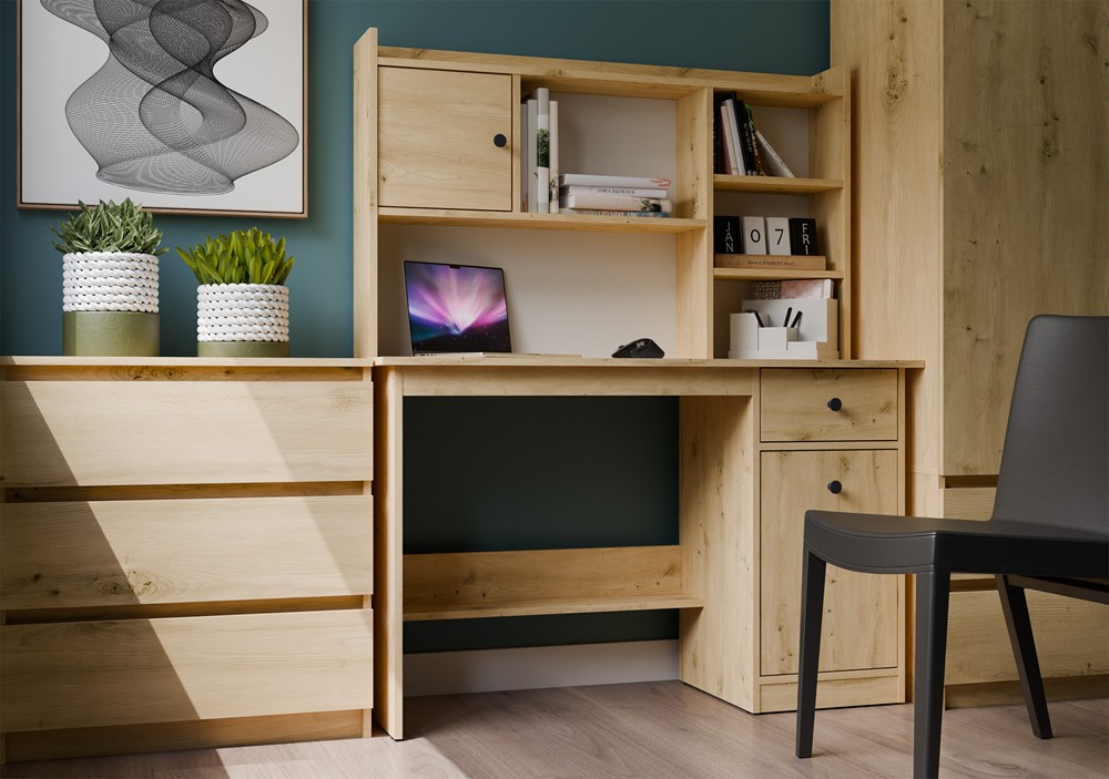 FUNKCJONALNE BIURKO Z NADSTAWKĄ – KOMPLET DO NAUKI I PRACY