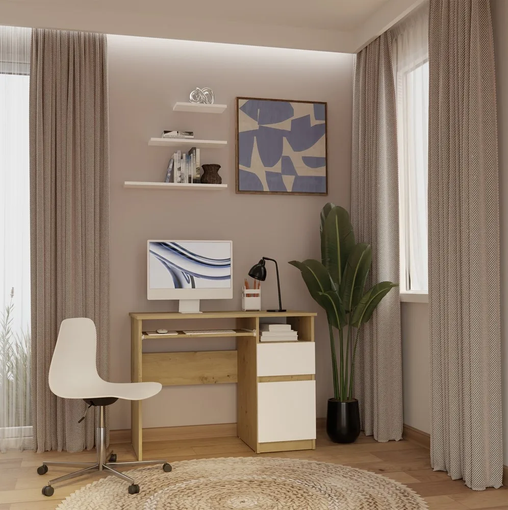 Dokładamy wszelkich starań, aby kolory mebli prezentowane na zdjęciach były odwzorowane możliwie jak najdokładniej. Należy jednak pamiętać, że ich odbiór może się różnić w zależności od indywidualnych ustawień monitora lub ekranu (takich jak jasność, kontrast, temperatura barwowa czy technologia wyświetlania). Rzeczywisty odcień produktu może się także różnić w zależności od warunków oświetleniowych.