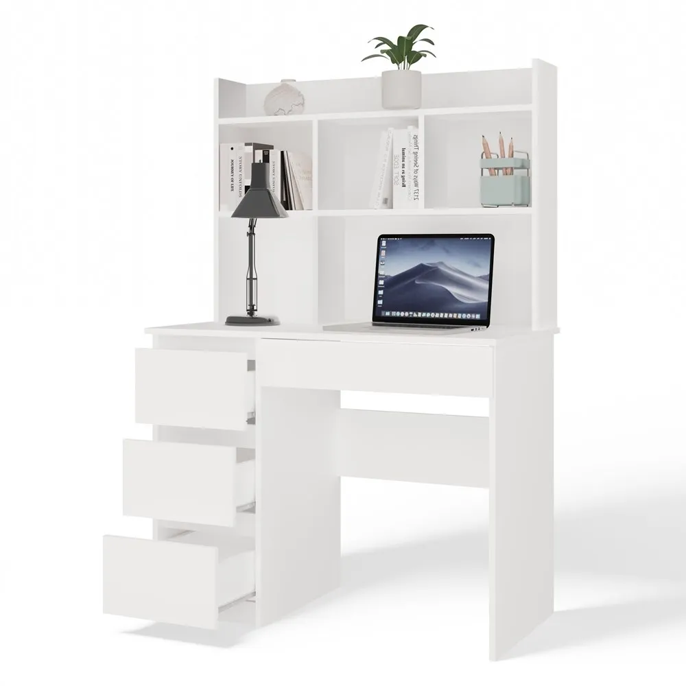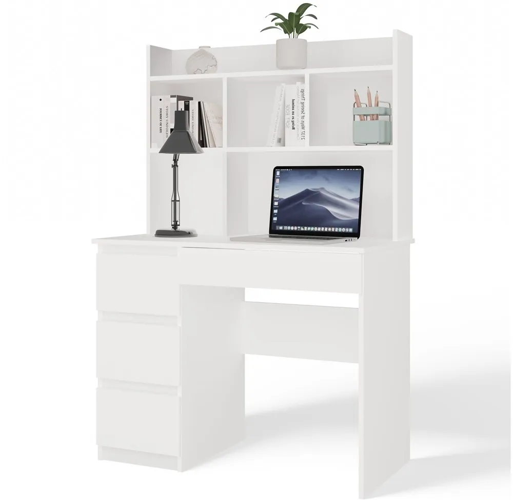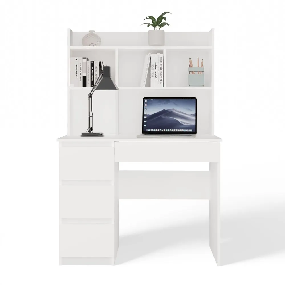 Biurko MIJAS Lewe z nadstawką to doskonała propozycja dla osób poszukujących estetycznego i wygodnego miejsca do nauki lub pracy. Zintegrowana nadstawka pozwala na lepszą organizację przestrzeni roboczej, a funkcjonalne szuflady i szeroki blat zapewniają wysoki komfort codziennego użytkowania.