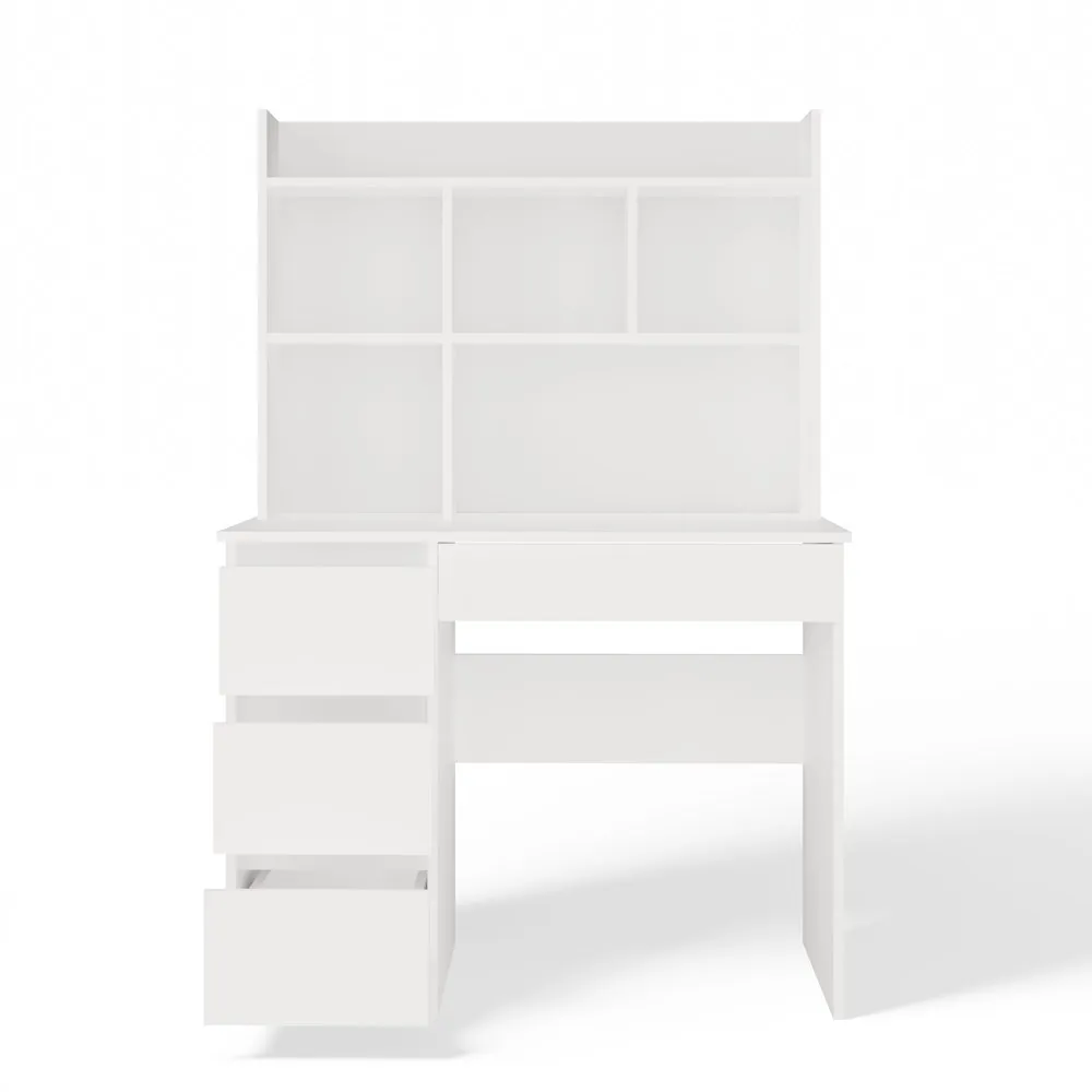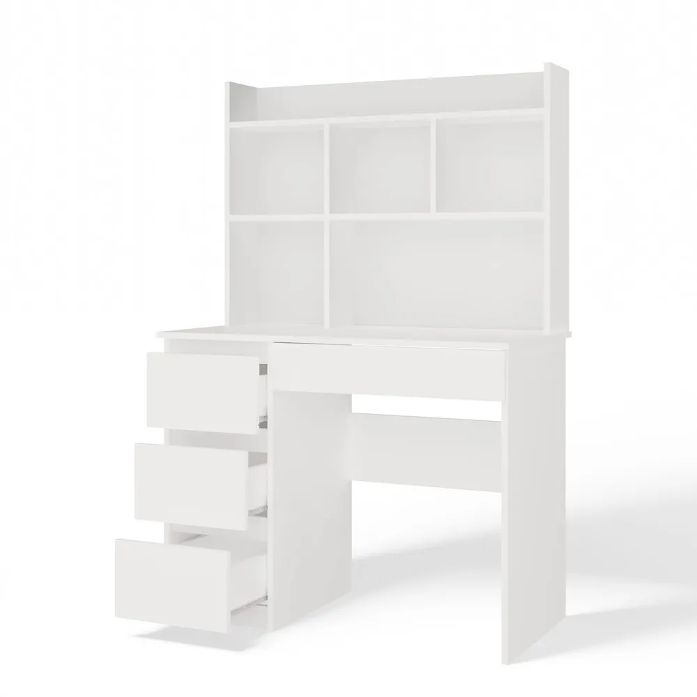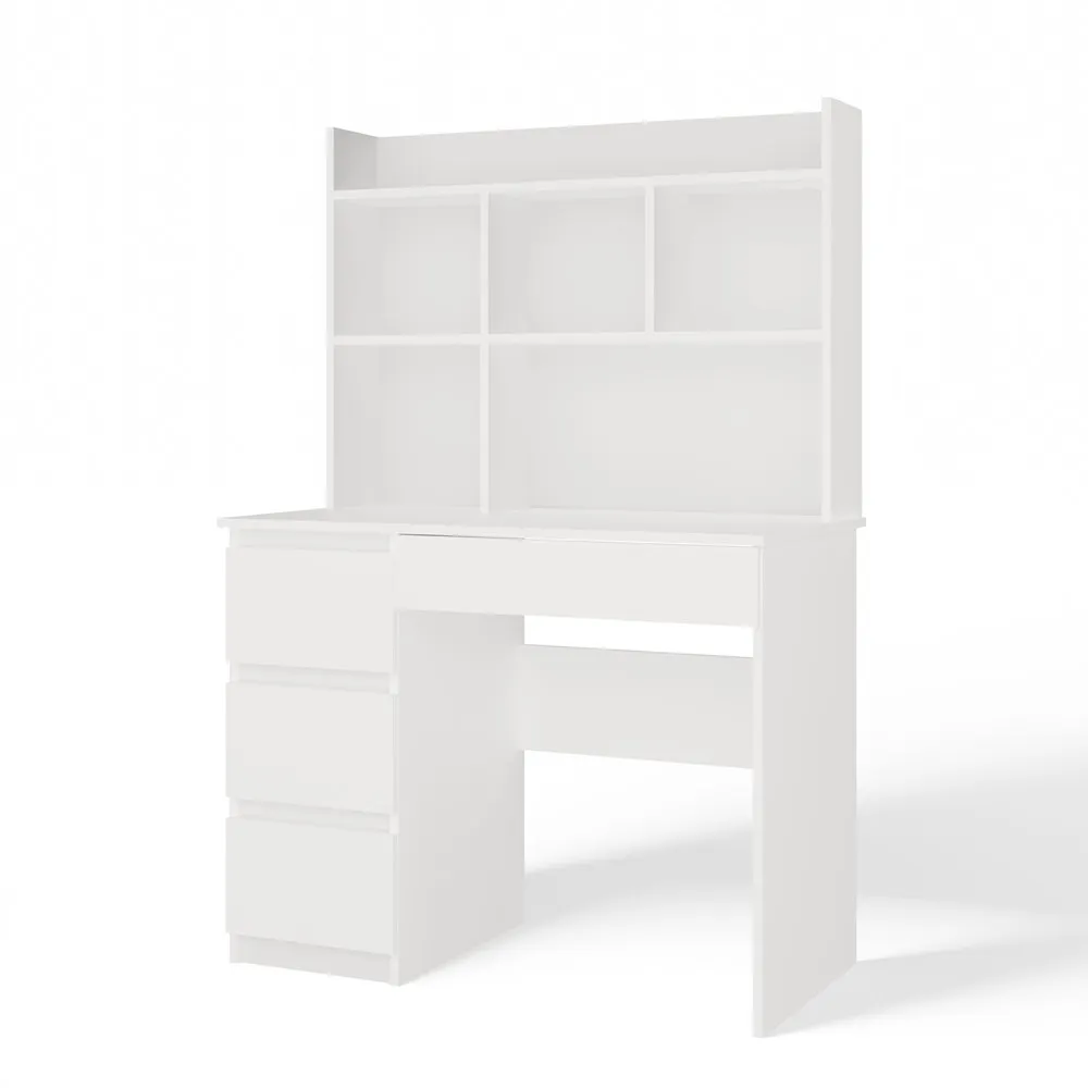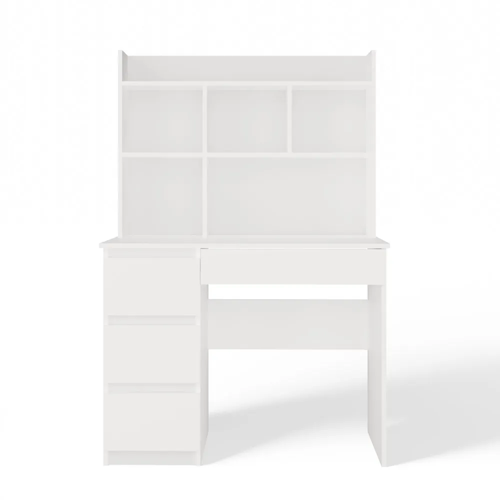 Nowoczesna forma, matowa biel oraz praktyczny układ przechowywania sprawiają, że mebel idealnie odnajdzie się zarówno w pokoju młodzieżowym, dziecięcym, jak i domowym biurze.