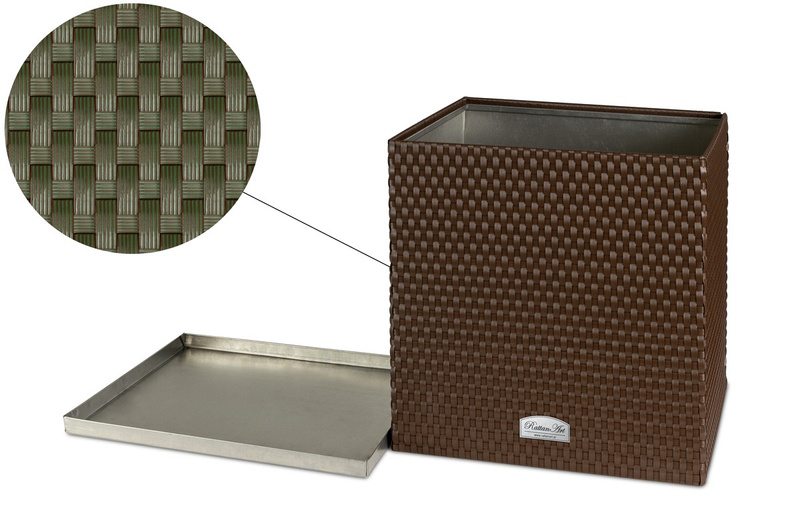 Technorattan to wysokiej jakości tworzywo odporne na warunki atmosferyczne, przeznaczone do użytkowania we wnętrzach jak i na zewnątrz o każdej porze roku. Donica umożliwia bezpośrednie wypełnienie podłożem do roślin.