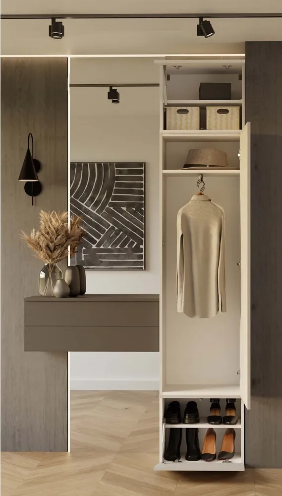 Seria mebli modułowych HAGA została zaprojektowana tak, by umożliwić dowolne zestawianie elementów - w łatwy sposób można rozbudować zestaw o dodatkowe moduły, np. wieszak, i stworzyć własny układ garderoby dostosowany do przestrzeni i potrzeb.