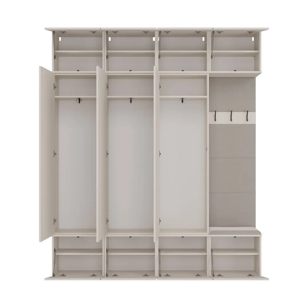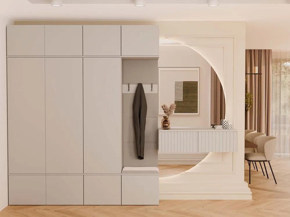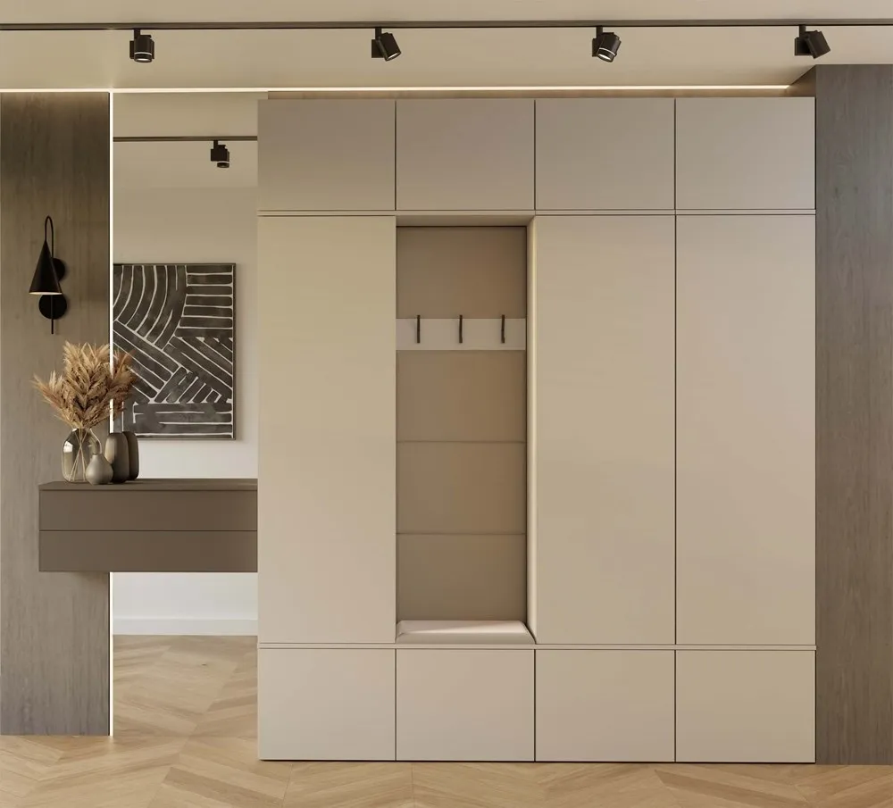 Dzięki przemyślanej, modułowej konstrukcji, każdy z elementów można swobodnie zestawiać, a całość tworzy elegancką i praktyczną przestrzeń wejściową – idealną zarówno do mieszkań, jak i domów jednorodzinnych.