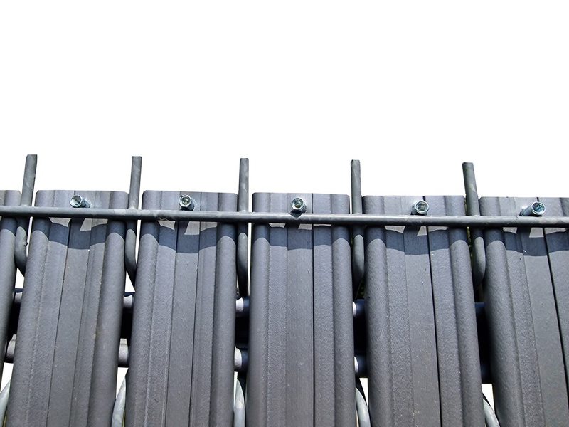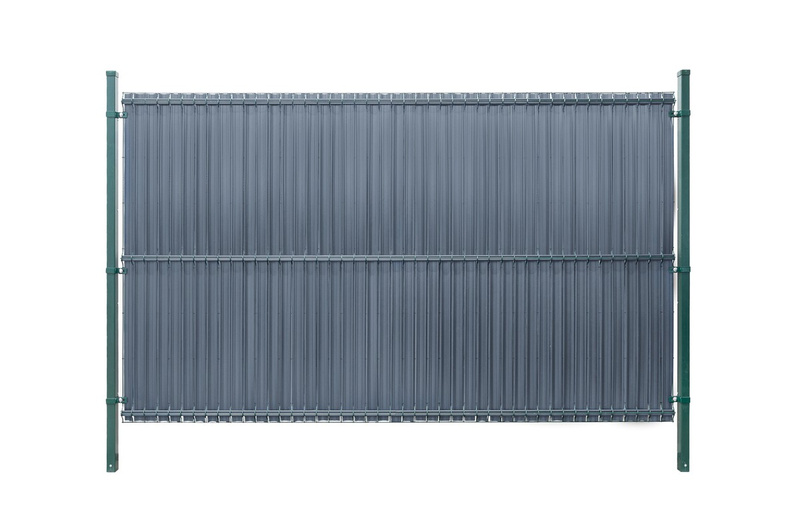 Osłona w postaci listew z tworzywa sztucznego wsuwanych w ogrodzenie panelowe do samodzielnego montażu.