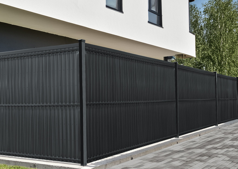 Osłona w postaci listew z tworzywa sztucznego wsuwanych w ogrodzenie panelowe do samodzielnego montażu.