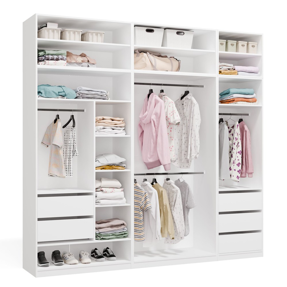 Garderoba Modułowa OPENO ZESTAW 260/250 BIAŁA Szuflady Drążki Półki Duża Do Sypialni-1