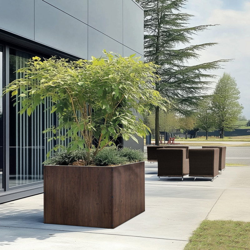 Donica ogrodowa metalowa kwadratowa 100x100x70 drewnopodobna