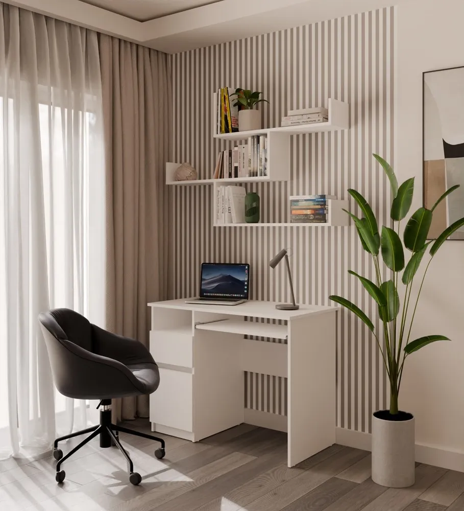 - Biała kolorystyka – pasuje do wielu stylów wnętrzarskich