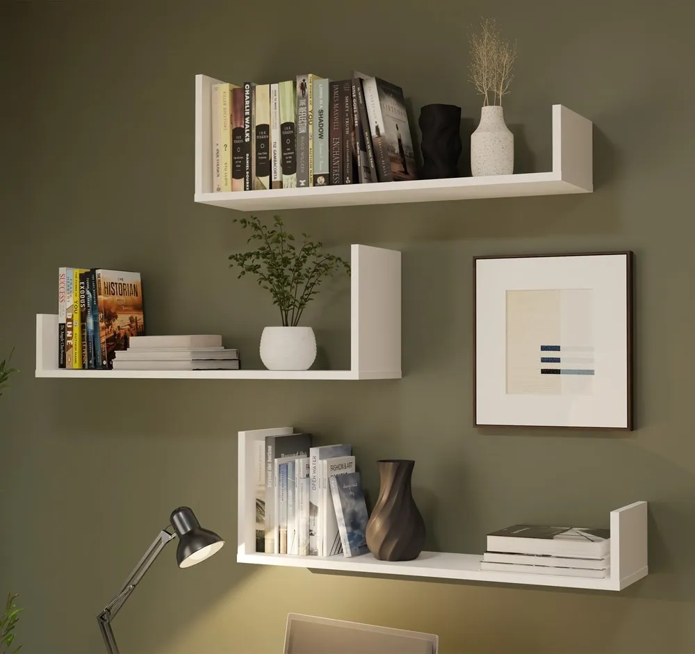 Dzięki przemyślanej budowie i praktycznym bocznym ściankom, półki świetnie sprawdzą się do przechowywania książek, ramek, roślin, a także drobiazgów dekoracyjnych. Każda półka posiada estetyczne elementy mocujące i może być zawieszona osobno lub jako komplet – zależnie od Twojej wizji.