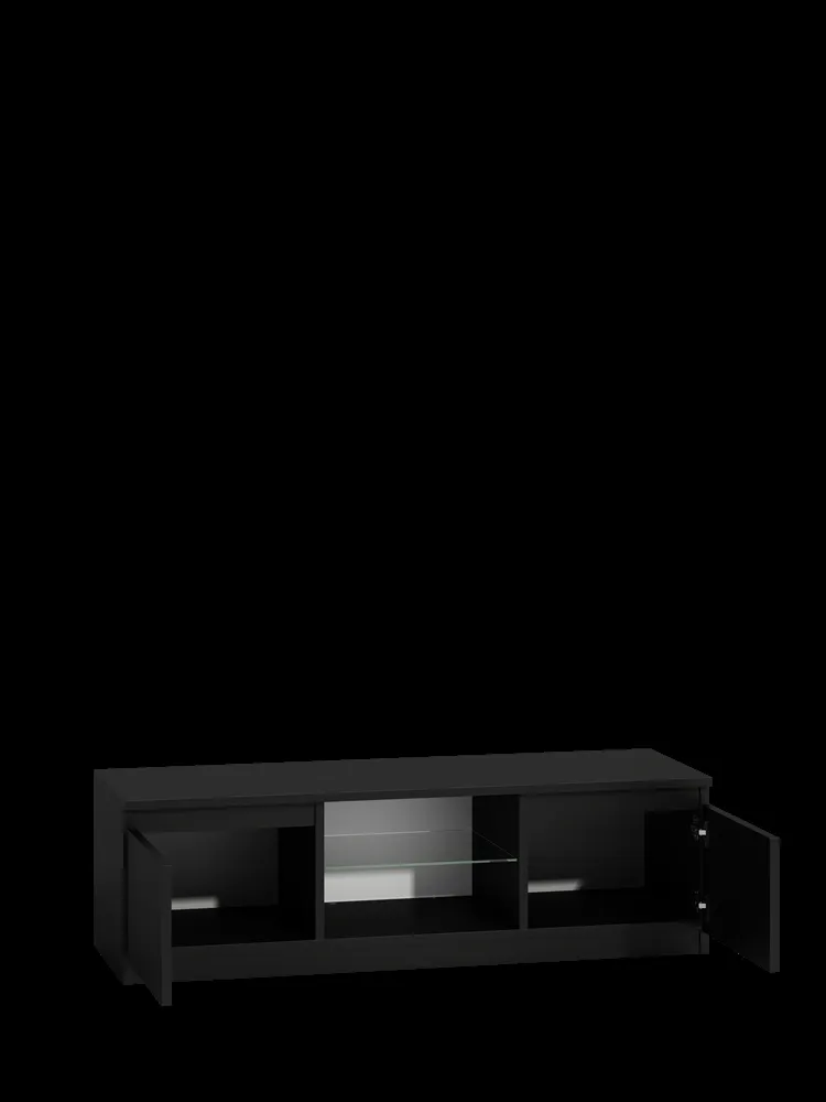 Dzięki naszym szafkom RTV każdy może zaaranżować swoje własne studio domowe. Uniwersalny wygląd sprosta oczekiwaniom wszystkich, którzy cenią połączenie prostoty i elegancji. Mebel posiada lakierowane fronty na wysoki połysk zaś korpus mebla jest laminowany.