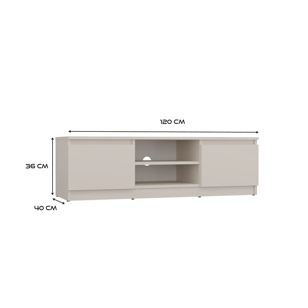 Szafka RTV 120 może posłużyć jako stolik pod telewizor, miejsce do przechowywania sprzętu audio video, a także jako dodatkowy schowek w salonie na drobne przedmioty użytku codziennego.