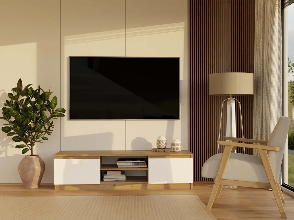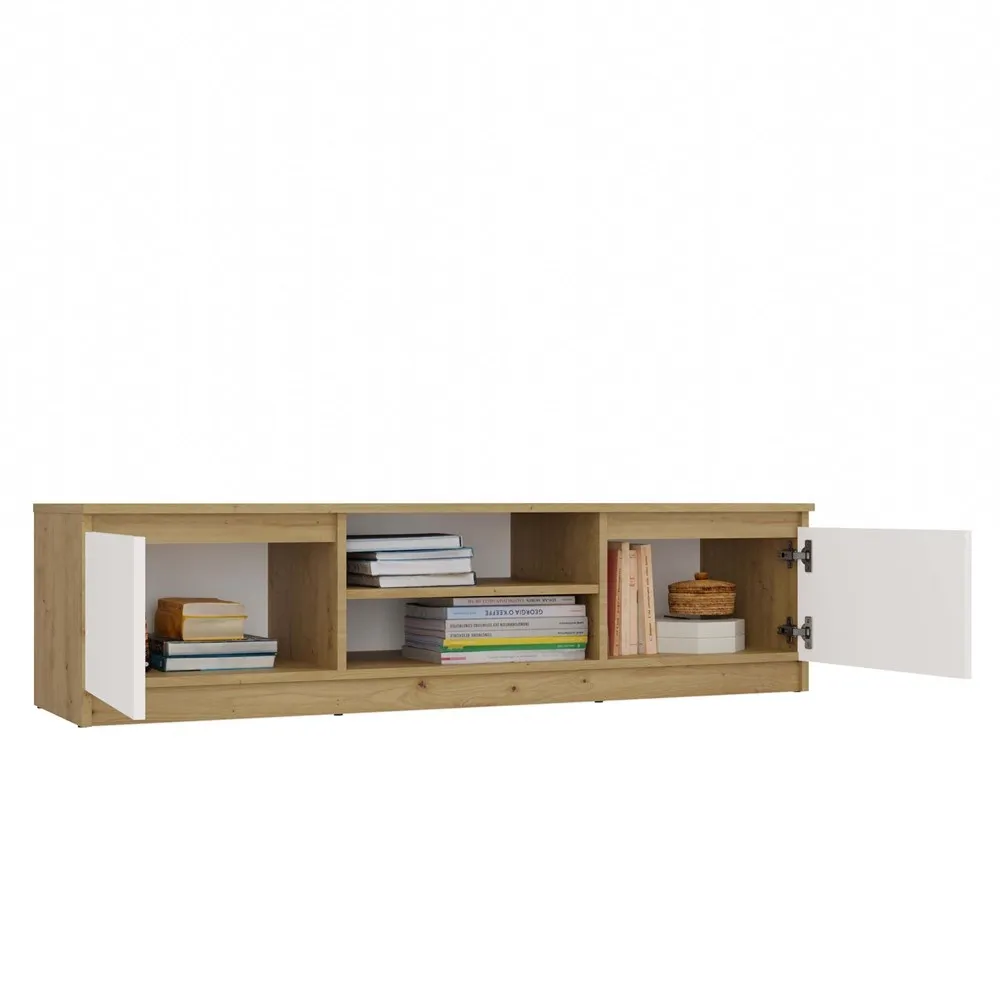 Szafka RTV 140 może posłużyć jako stolik pod telewizor, miejsce do przechowywania sprzętu audio video, a także jako dodatkowy schowek w salonie na drobne przedmioty użytku codziennego.