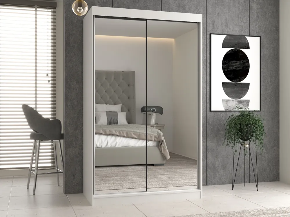 - szafa z przesuwnymi drzwiami, na których znajdują się dwa duże lustra