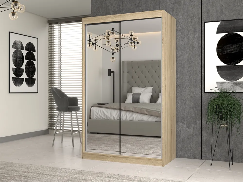 - szafa z przesuwnymi drzwiami, na których znajdują się dwa duże lustra