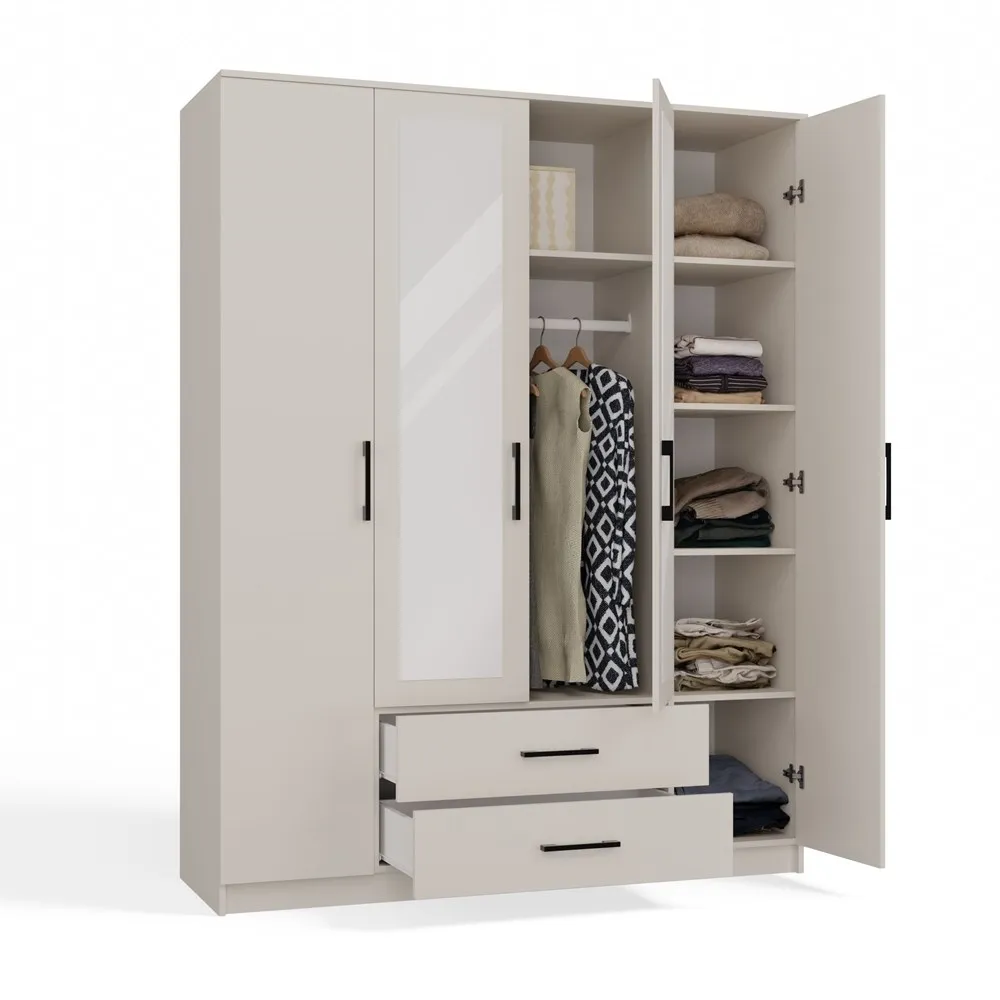 - Duża pojemność: Przestronny układ wewnętrzny z półkami oraz drążkiem na ubrania sprawia, że szafa idealnie nadaje się do przechowywania zarówno odzieży wiszącej, jak i składanej. Dodatkowo, dwie szuflady pozwalają na wygodne przechowywanie bielizny czy akcesoriów.