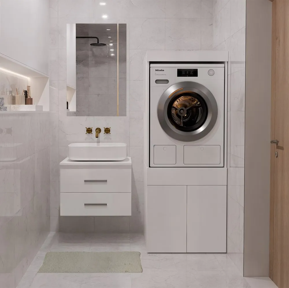 Przestrzeń na pralkę lub suszarkę – stabilna zabudowa z otwartą wnęką
