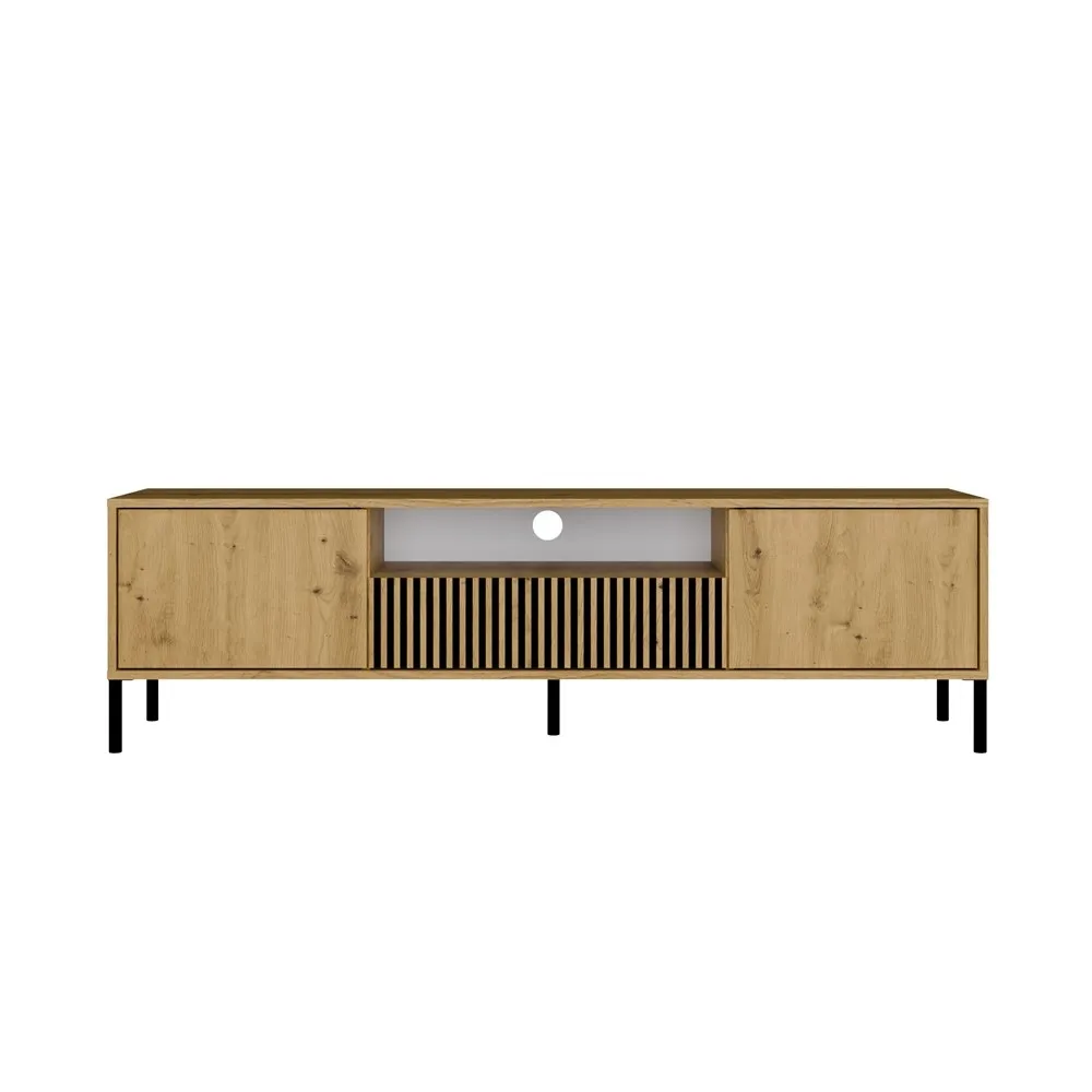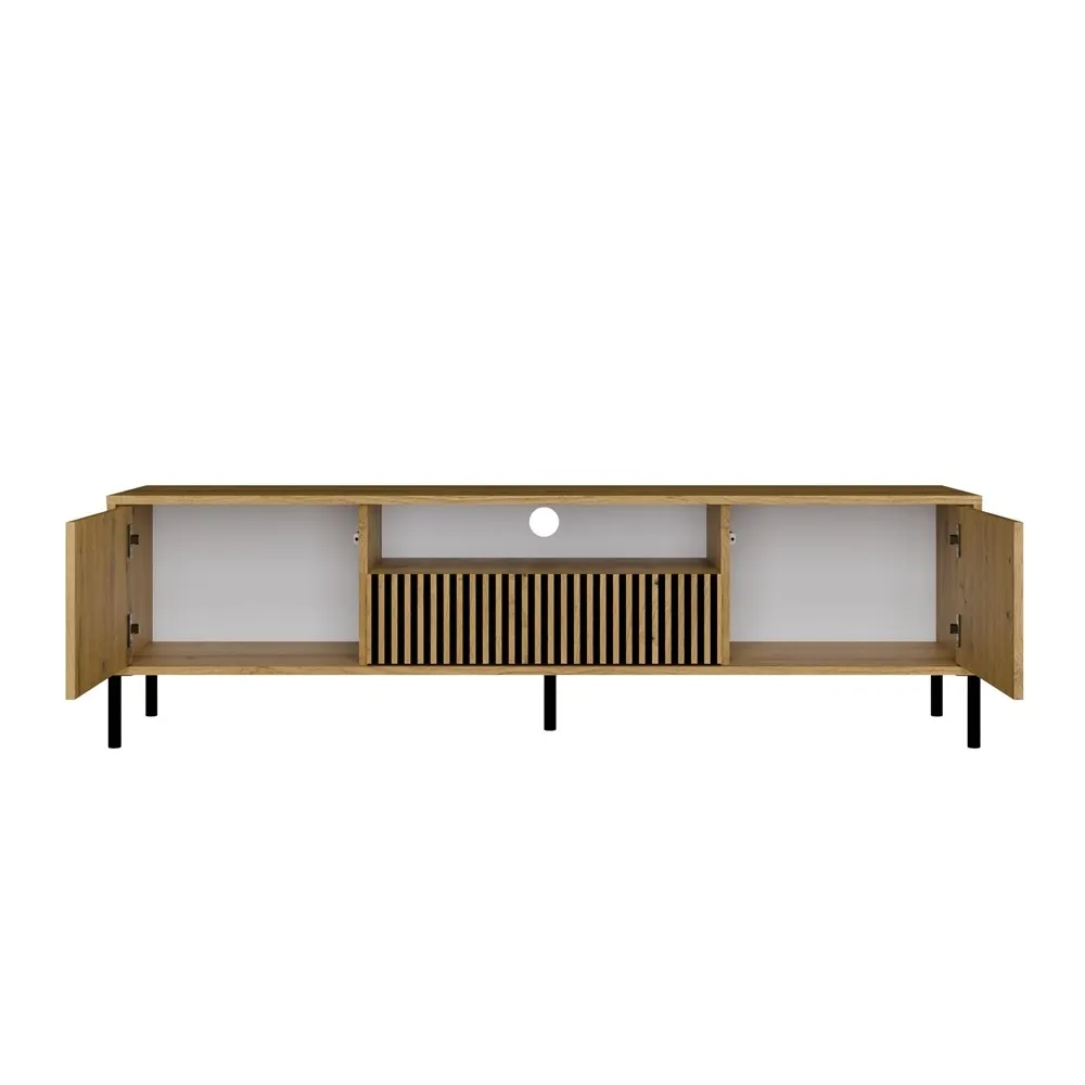 Szafka RTV KAMARO to idealne rozwiązanie dla osób ceniących nowoczesny styl i praktyczne rozwiązania. Minimalistyczna konstrukcja i ryflowane fronty nadają jej wyjątkowy charakter, a przemyślany układ półek i szafek pozwala na komfortowe przechowywanie i organizację przestrzeni.