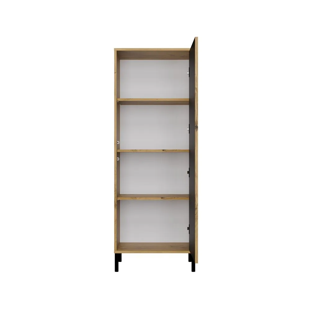 Witryna KAMARO 1DD SLIM ARTISAN idealnie współgra z innymi meblami z kolekcji KAMARO — szafką RTV, komodą czy innymi witrynami. Możesz dowolnie łączyć elementy, tworząc harmonijną przestrzeń dostosowaną do swoich potrzeb i stylu życia.