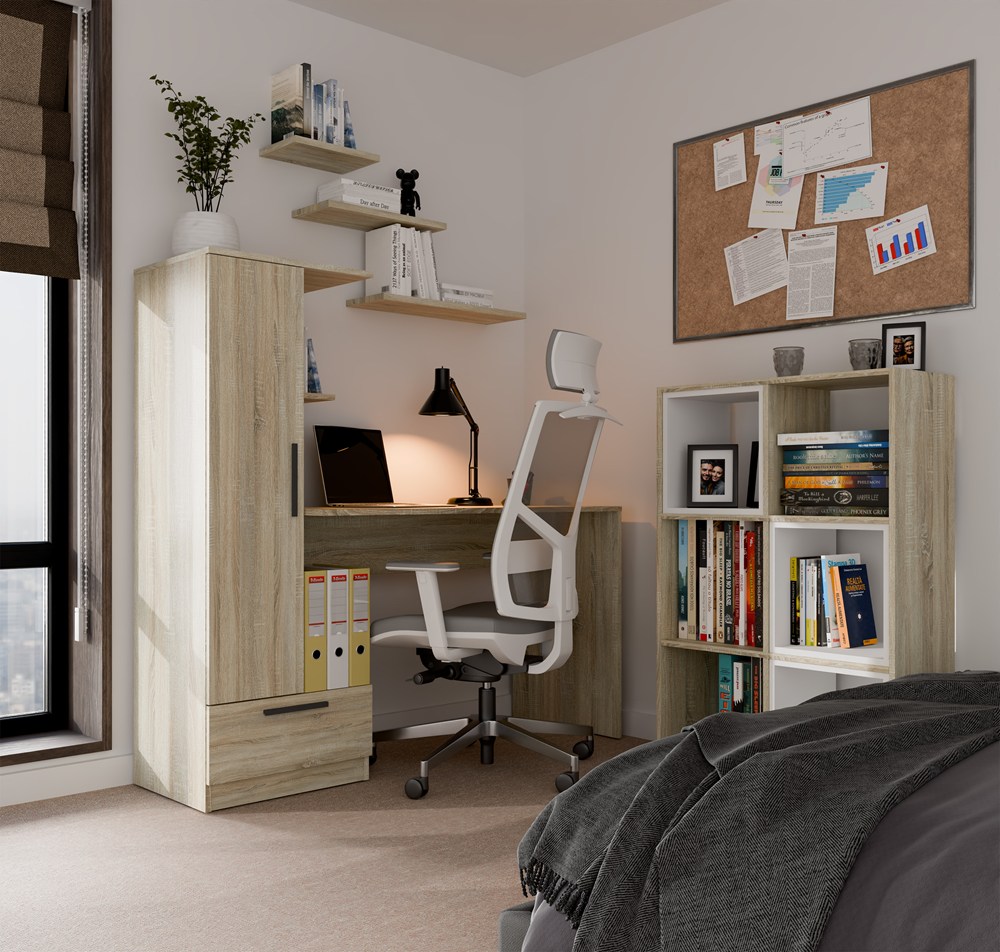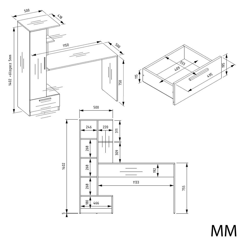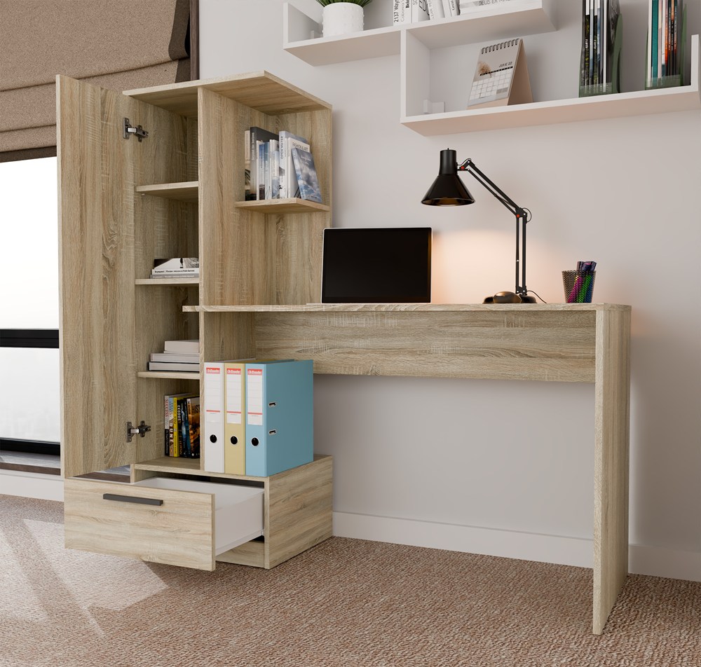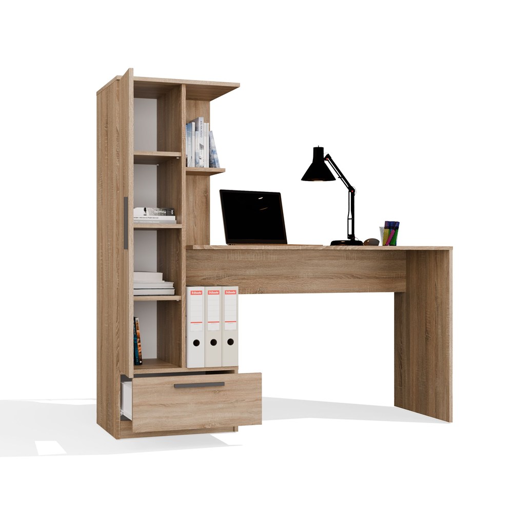 Biurko COSMO to idealna propozycja dla osób ceniących ergonomię, nowoczesny styl oraz porządek w miejscu pracy lub nauki. Funkcjonalny regał i szeroki blat roboczy sprawiają, że z łatwością stworzysz wygodną strefę do działania – nawet w niewielkim pokoju.